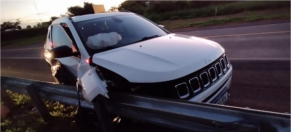 Na manhã desta terça-feira(24) por volta de 4h30, um acidente na Rodovia SP-425 – Assis Chateaubriand, município de Parapuã SP, km 372, onde um Jeep Compass branco, de Presidente Prudente que tracionava um jet-ski, ocupado por quatro pessoas, bateu na cabeceira de uma defensa metálica da rodovia
