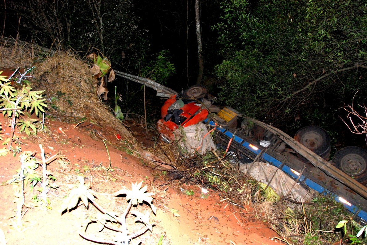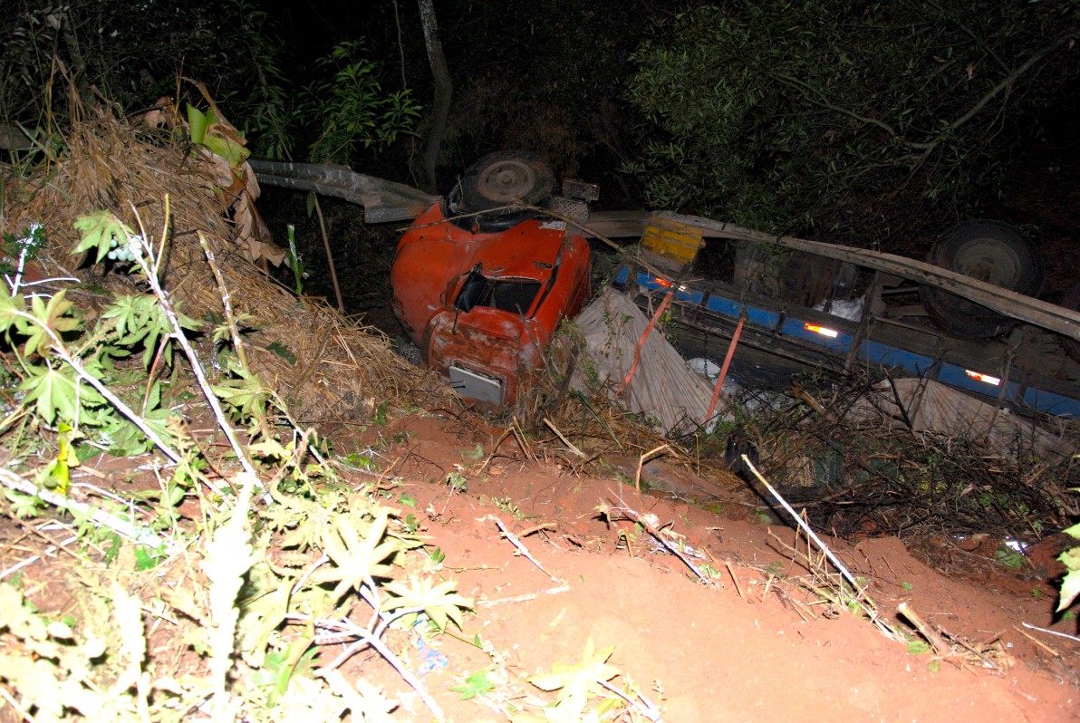 Segundo informações colhidas no local, um homem que conduzia um caminhão Mercedes-Benz com placas de Hortolândia/SP, carregado de ração para gado, seguia no sentido Santópolis do Aguapeí a Rinópolis, quando no KM 348+100 metros da SP-425, Rodovia Assis Chateaubriand, perdeu o controle do veículo, tombou sobre o guard rail e em seguida caiu em um barranco.