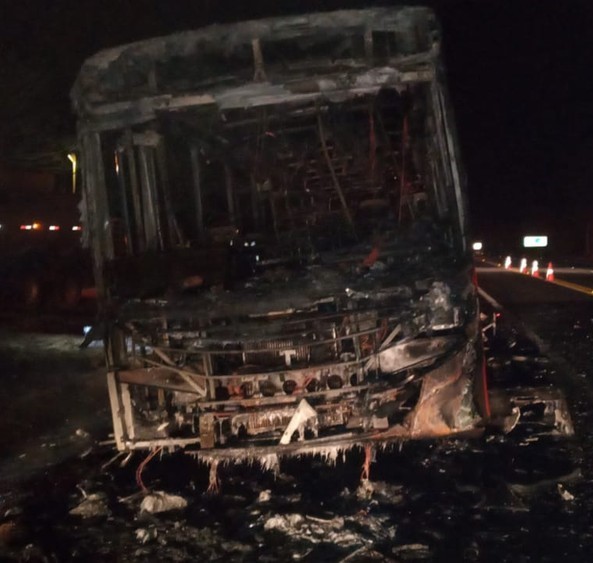Um ônibus pegou fogo na Rodovia Comandante João Ribeiro de Barros (SP-294), em Panorama. O incêndio mobilizou equipes policiais e de uma usina por volta das 23h50 desta terça-feira (14).