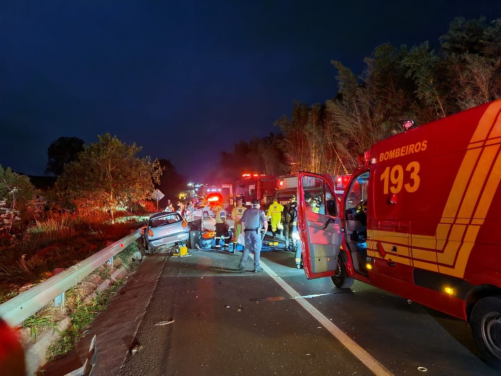 Uma batida frontal entre uma picape e um carro matou cinco pessoas na noite deste sábado (24). Conforme a Polícia Rodoviária, o acidente foi no km 503 da Rodovia Homero Severo Lins (SP-284), em João Ramalho.