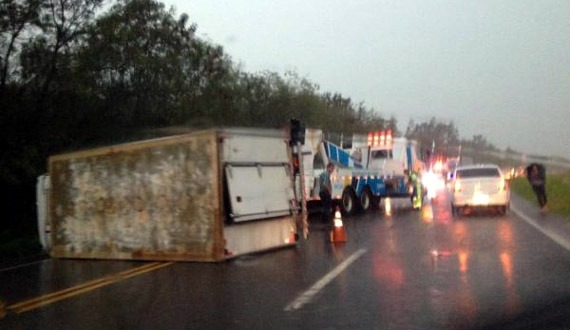 A chuva era intensa naquela região no momento do acidente e impediu que os trabalhos de destombamento fossem realizados para que o fluxo de veículos fosse reestabelecido.