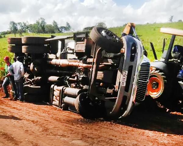 Um caminhão basculante da marca International, da Prefeitura de Flórida Paulista, tombou na tarde desta terça-feira (2), na estrada rural do Bairro Santa Lina, nas proximidades da Chácara do Sindicado dos Servidores Públicos Municipais.