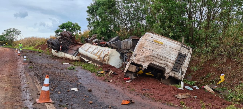 De acordo com a Polícia Militar Rodoviária, o caminhão tracionado com dois semirreboques tanque, ambos com placas de Bauru (SP), seguia no sentido de Paraguaçu Paulista (SP) a Iepê. Por motivos a serem esclarecidos, o motorista perdeu o controle da direção, bateu em um barranco e tombou.