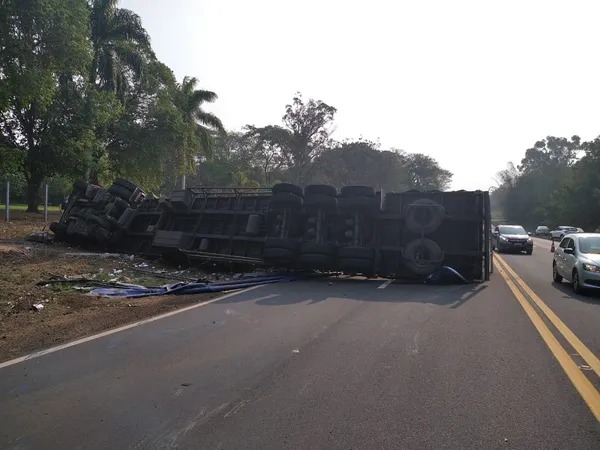 A via ficou parcialmente interditada, pois o caminhão tombou em direção à pista, espalhando o carregamento de papel celulose no local. Em seguida, o veículo foi acomodado no acostamento e a carga foi carregada em outro caminhão. O trânsito já foi liberado.