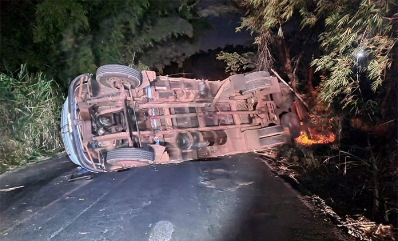 Segundo informações, o motorista transitava pela vicinal com o caminhão e ao chegar em um ponto de subida, logo após o Rio do Peixe, houve falha em uma das marchas e o veículo começou a voltar em marcha à ré. Consta ainda que, para não atingir um veículo que vinha logo atrás, o caminhoneiro manobrou a traseira em direção barranco e o caminhão, que estava com uma carga de materiais recicláveis, acabou tombando.