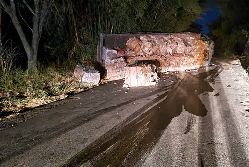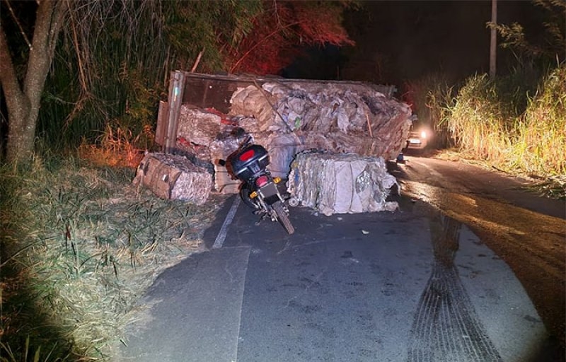 Um acidente envolvendo um caminhão que transportava materiais recicláveis interditou a Vicinal Adelelmo Piva, que liga os municípios de Tupã e Quatá, na noite dessa sexta-feira, dia 23. Devido o tombamento do caminhão, ocorreu vazamento de óleo e a pista precisou ser interditada, pois havia risco grande de ocorrer novos acidente com os veículos que passavam pelo local.