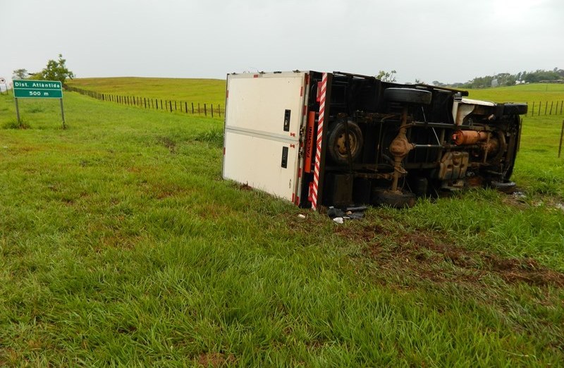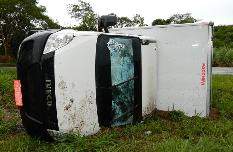 Um caminhão Iveco Daily com placas de Fernando Prestes/SP tombou por volta das 15h10 na altura do km 612 da Rodovia Comandante João Ribeiro de Barros (SP-294) próximo ao trevo de Atlântida em Flórida Paulista.