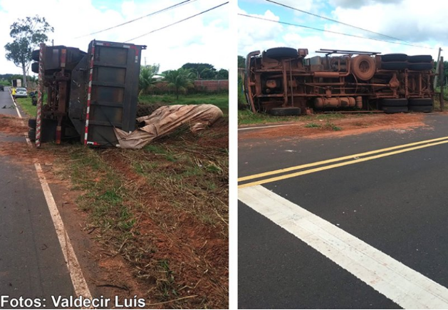 Segundo apurado no local, o caminhão caçamba, ocupado pelo condutor e passageiro e que transportava esterco de galinha, trafegava pela vicinal no sentido o município de Parapuã a Bastos e no local, onde existe uma curva acentuada, por motivos a serem esclarecidos, tombou no acostamento da via.