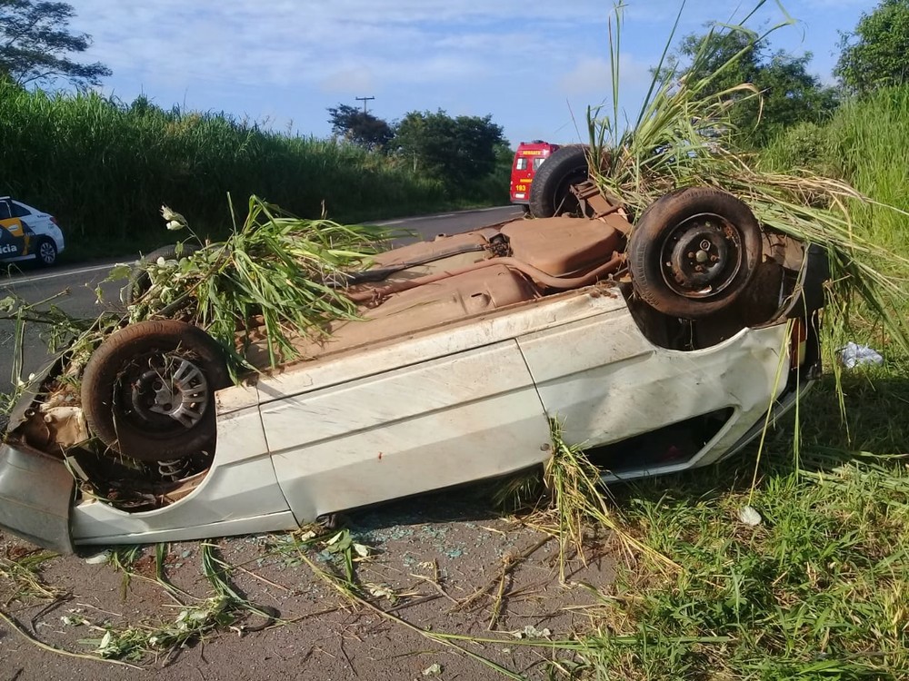 Aos policiais, o condutor alegou que o pneu traseiro do lado direito estourou, momento em que perdeu o controle da direção e ocorreu a capotagem.