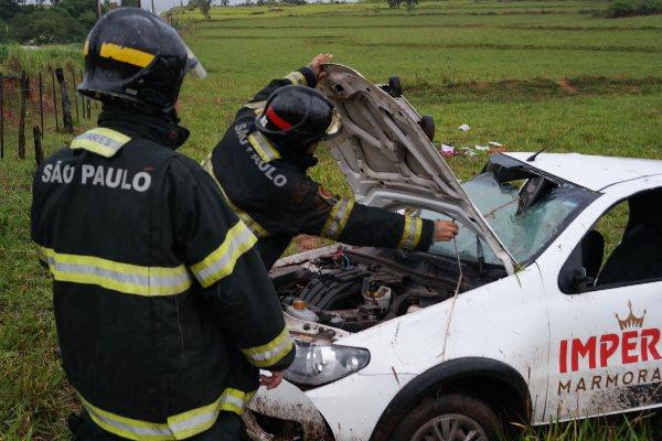 Com o choque os veículos saíram da pista e caíram em um barranco, parando no pasto de uma propriedade rural que fica ao lado da rodovia.