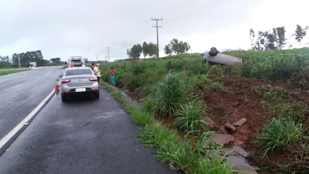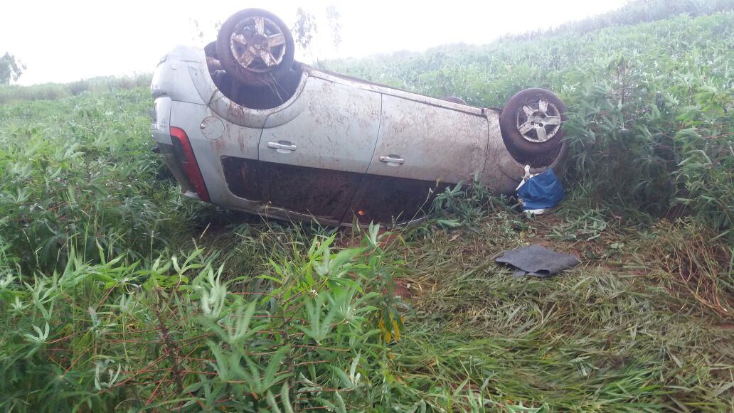 Ao sair da via, o veÃculo capotou, indo parar na lateral da rodovia, em uma área de pastagem, à s margens da estrada.