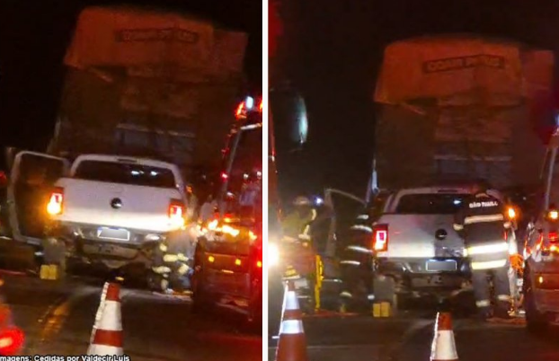Consta ainda que três pessoas que estavam na caminhonete ficaram presos às ferragens e foram resgatadas para receberem atendimento médico. Outras duas vítimas, que também estavam na caminhonete e ficaram feridas, conseguiram sair do veículo por meios próprios.