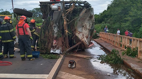 Com o impacto, o motorista do ônibus perdeu o controle do veículo que caiu em um córrego, despencando de uma altura de 5 metros. O ônibus transportava em torno de 30 trabalhadores do frigorífico.