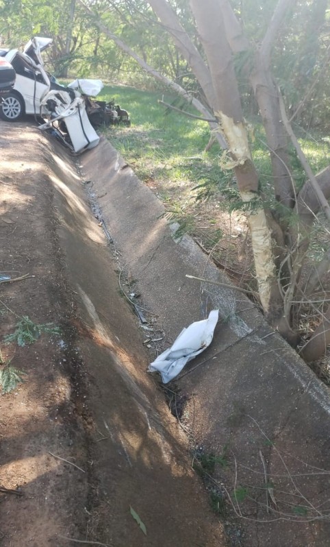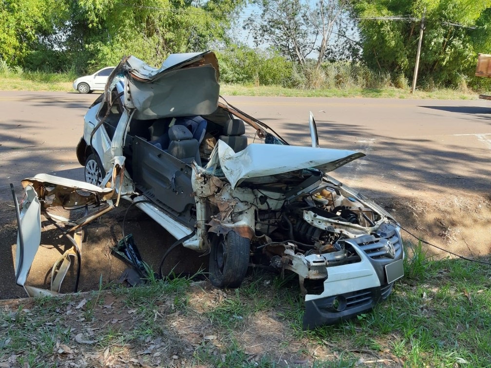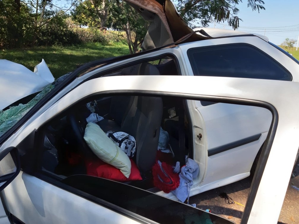 Em seguida, o veículo atingiu uma árvore e continuou em movimento na valeta, o que causou danos na lateral direita do carro, que tem placas de Presidente Prudente.