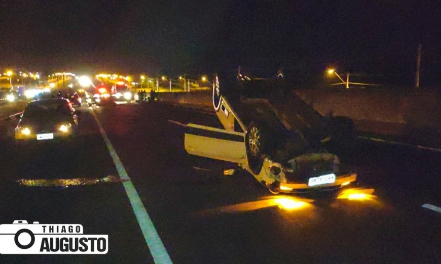 Um dos automóveis, uma picape Saveiro, capotou e parou com as rodas para cima no meio da pista. O motociclista foi socorrido em estado grave e não resistiu aos ferimentos.