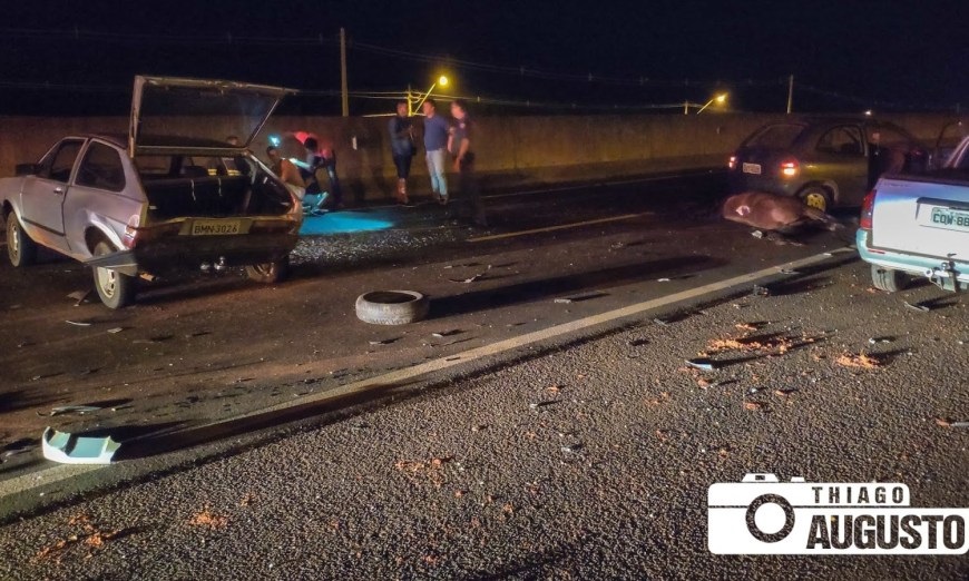 Sem tempo de parar ou desviar, os outros três carros acabaram colidindo nos veículos envolvidos no atropelamento do animal.