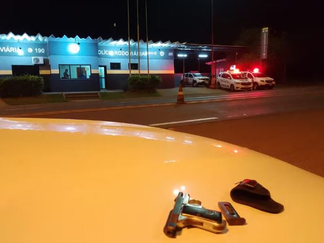 Um homem, de 47 anos, foi preso em flagrante por porte ilegal de arma de fogo, no km 75,500 da Rodovia Arlindo Béttio (SP-613), em Rosana (SP), na noite deste sábado (11).