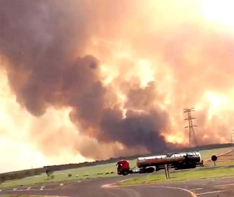Equipes de várias usinas de cana-de-açúcar da região de Quatá (SP) passaram o dia nesta quarta-feira (30) tentando controlar um grande incêndio que começou na terça-feira (29) em um canavial às margens da Rodovia Manilio Gobbi (SP-284).