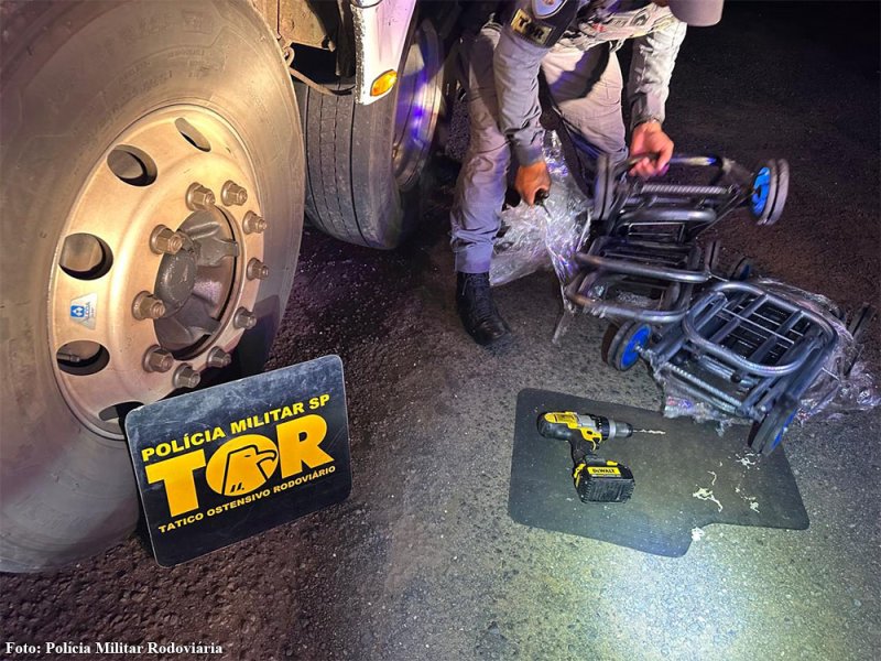 Ainda conforme a Polícia Militar Rodoviária, ao vistoriarem as estruturas dos canos metálicos dos referidos carrinhos, com auxílio de furadeira, as equipes localizaram ocultos em seus interiores 82 invólucros de pasta base de cocaína que totalizaram 6 quilos e 170 gramas da droga. O suspeito, que estava em uma das poltrona, foi identificado pelas etiquetas que continham nos carrinhos, através do controle de bagagens que fica sob a responsabilidade do motorista do coletivo.