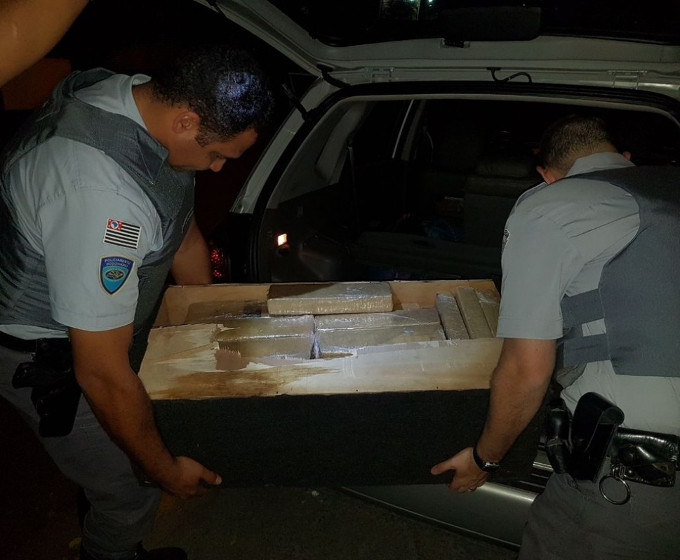 Ao realizar buscas no interior do carro, os militares encontraram 227 tabletes de maconha, sendo 14 de Skank e ainda 1,946 kg de cocaÃna, que estavam escondidos em compartimentos internos, de acordo com a PolÃcia.