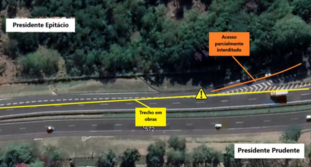 Em Presidente Prudente, a pista sentido capital-interior (oeste) será bloqueada na faixa 2 (à direita) entre os quilômetros 571+300 e 573. O motorista que precisar acessar a alça de acesso do km 571+800, nesta quinta-feira (17), vai encontrá-la interditada parcialmente. O condutor deverá redobrar a atenção para a sinalização.