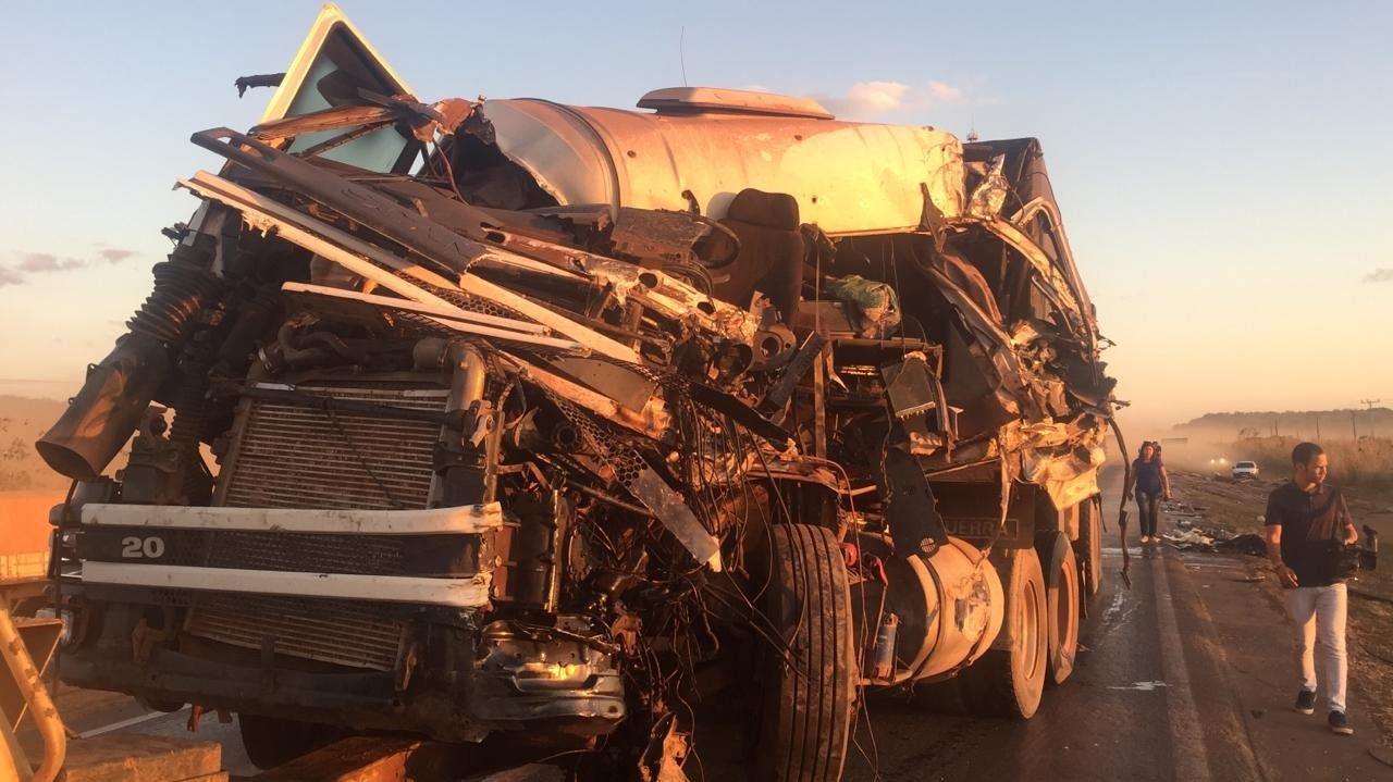 O outro caminhão, que estava carregado de madeira, seguia na direção contrária quando ocasionou a colisão.