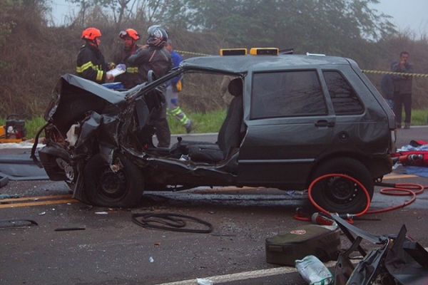 Com o acidente as três pistas de rolamento foram completamente interditadas, onde rapidamente grande fila de veículos se formaram nos dois sentidos. Havia muita neblina no momento da batida.
