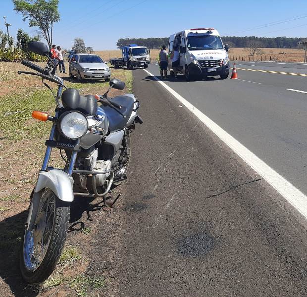 O motociclista foi projetado ao solo sofrendo diversas escoriações, e foi socorrido pela Unidade de Suporte Avançado da Concessionária Eixo, com suspeita de fratura na clavícula para Santa Casa de Tupã.