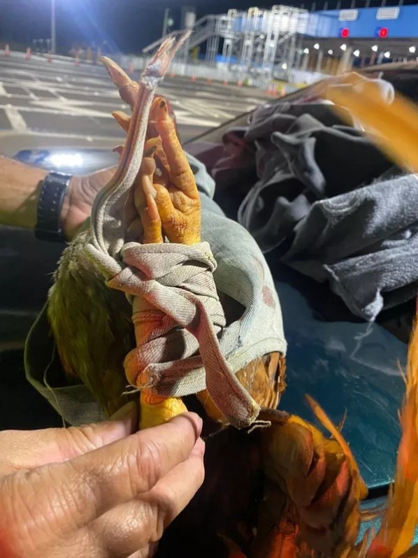 A Polícia Ambiental informou ao g1 que foi acionada pelo Policiamento Rodoviário e verificou que os galos apresentavam ferimentos pós-rinha.