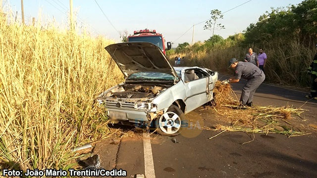 O carro, placas de Tupã, ficou completamente destruÃdo.