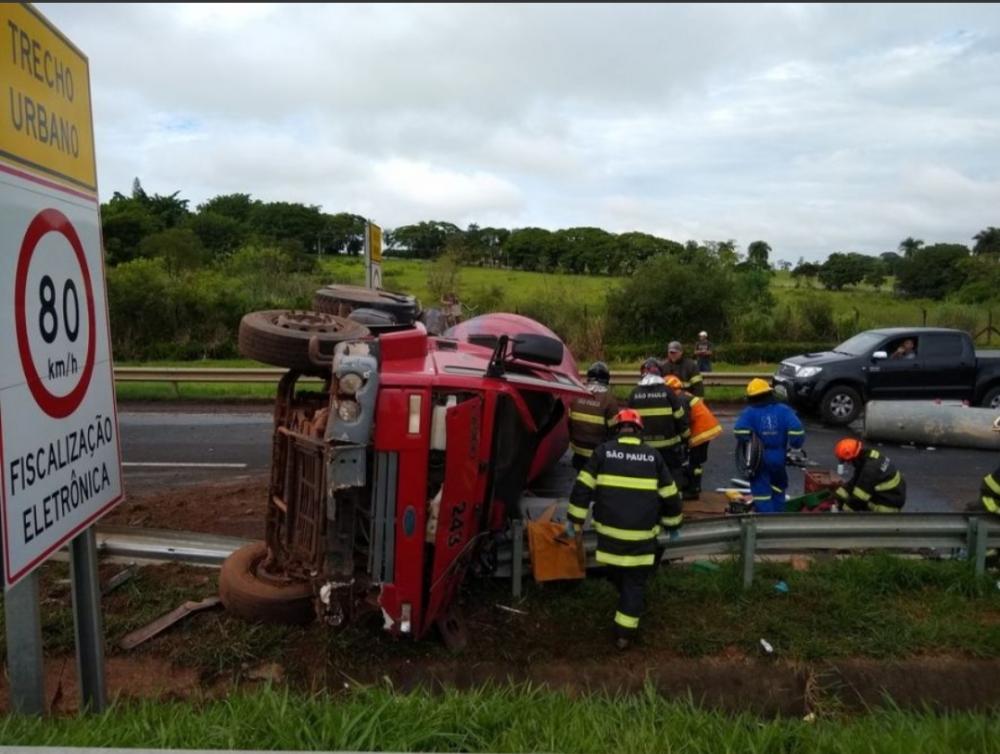 Um caminhão de concreto tombou por volta das 8h da manhã desta quarta-feira (05) na rodovia Marechal Rondon (SP-300) em Araçatuba.