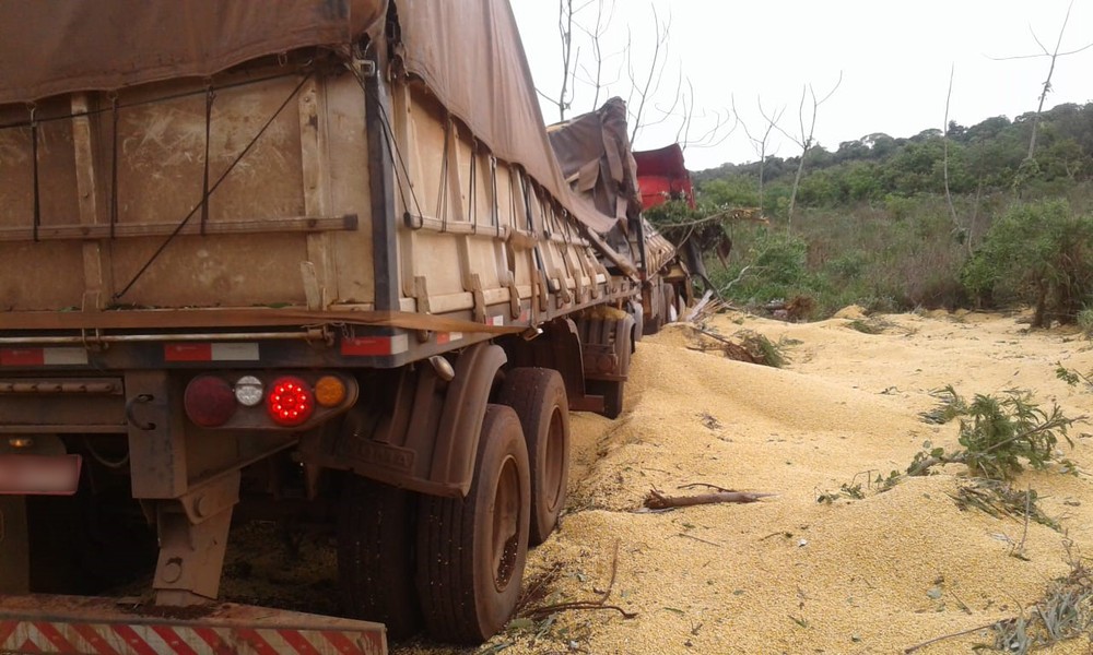 Um acidente de trânsito envolvendo um caminhão carregado com milho foi registrado neste domingo (17), em Mirante do Paranapanema (SP). A carga ficou espalhada após o veículo sair da pista e cair num barranco.