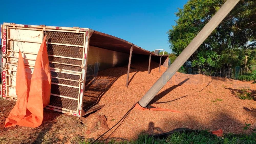 No final da tarde desta quarta-feira o condutor de uma carreta carregada com amendoim trafegava pela Rodovia Comandante João Ribeiro de Barros, no sentido de Iacri para Tupã, quando ao contornar o trevo de acesso ao Distrito de Universo perdeu controle da direção e o veículo acabou tombando.