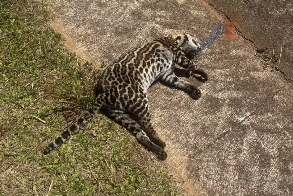 Uma jaguatirica morreu atropelada nesta segunda-feira (11) em um trecho da Rodovia Assis Chateaubriand (SP-425), em Indiana (SP). O corpo do animal estava no canteiro central da via.
