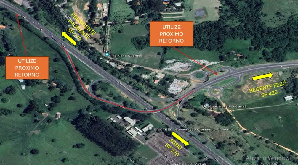 Durante este período, os motoristas que trafegarem pela Rodovia Raposo Tavares e precisarem acessar a Rodovia Assis Chateaubriand, no sentido de Martinópolis (SP), deverão seguir adiante até o próximo retorno, localizado no km 557, a cerca de 2 quilômetros do ponto de interdição.
