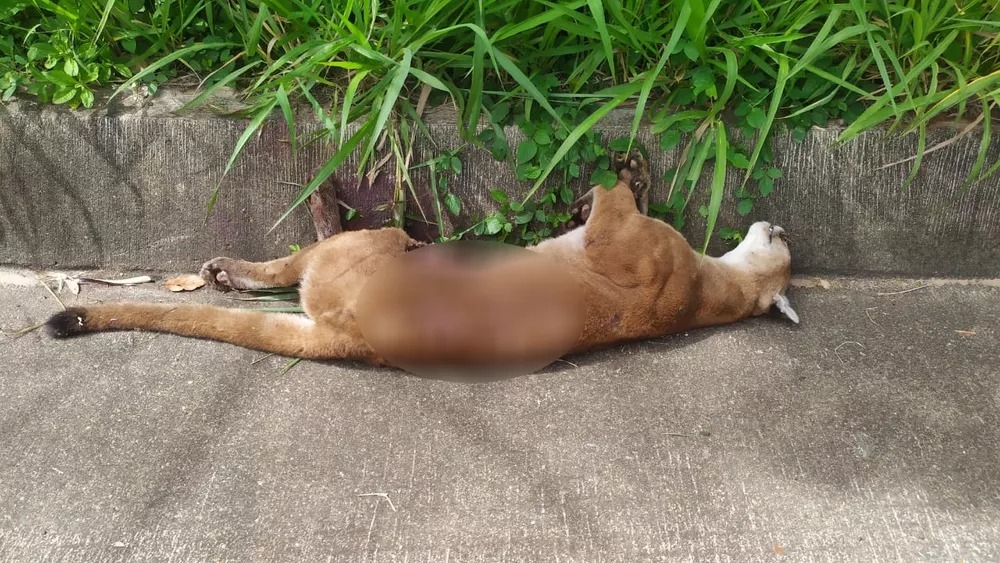 Uma onça-parda (Puma concolor) morreu após ser atropelada na Rodovia Assis Chateaubriand (SP-425), em Presidente Prudente (SP). O animal foi recolhido pela Polícia Militar Ambiental na manhã desta quinta-feira (31).