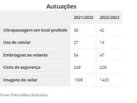 Conforme o capitão Daniel Martins, da Polícia Militar Rodoviária do Estado de São Paulo, ainda é recorrente o número de infratores que "insistem em ultrapassar em local proibido, em exceder os limites de velocidade e não utilizar cinto de segurança".