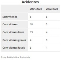 Confira o comparativo de acidentes e autuações da Operação Ano Novo nos anos de 2021/2022 e 2022/2023: