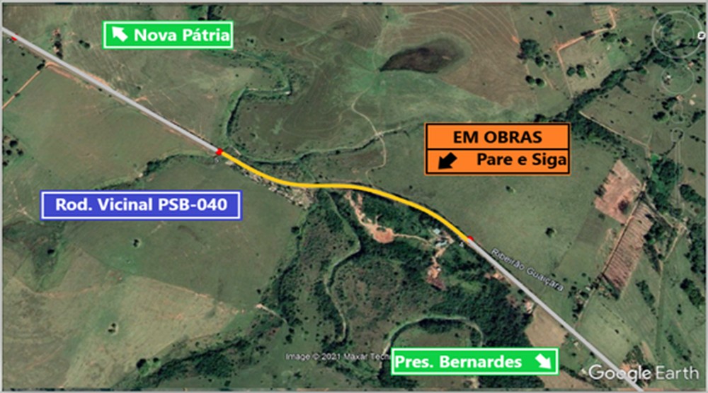 A rodovia vicinal PSB-040, que liga a Rodovia Raposo Tavares (SP-270) ao distrito de Nova Pátria, em Presidente Bernardes (SP), estará em obras nestas segunda-feira (29) e terça-feira (30). Neste período, a Concessionária Auto Raposo Tavares (Cart) irá realizar a operação Pare e Siga nos pontos de intervenção.