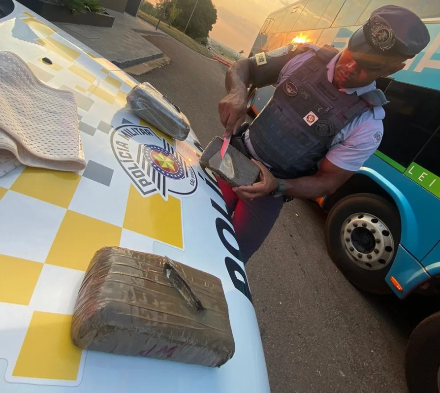 Em meio a vistoria, foi constatado que uma passageira trazia entorpecentes junto ao corpo, na região da cintura e nas costas.