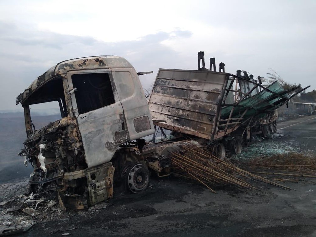 Um caminhão e uma van bateram de frente, por volta das 16h30 , em decorrência da falta de visibilidade aos condutores por causa da fumaça provocada por focos de incêndio de grandes proporções em vegetação às margens da rodovia.