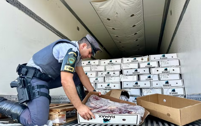 A Polícia Rodoviária apreendeu neste sábado (6), na Rodovia Marechal Rondon (SP-300), em Cafelândia (SP), um caminhão com uma carga de carnes nobres avaliada em R$ 1 milhão.