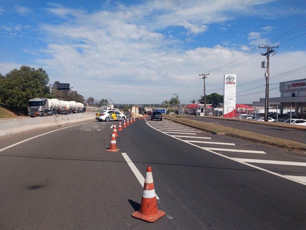 O condutor do conjunto de veículos – um caminhão bitrem –, ao adentrar a alça de aceso à rodovia SP-425, sentido sul, perdeu o controle da última unidade, a qual tombou. A carga, de laminado de MDF, se espalhou pela pista.