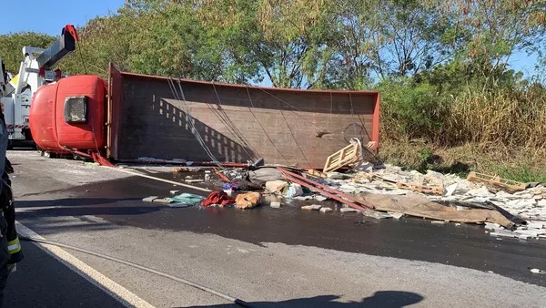 O tráfego de veículos no sentido Pirapozinho–Presidente Prudente foi interditado para a limpeza da pista e a remoção do caminhão.