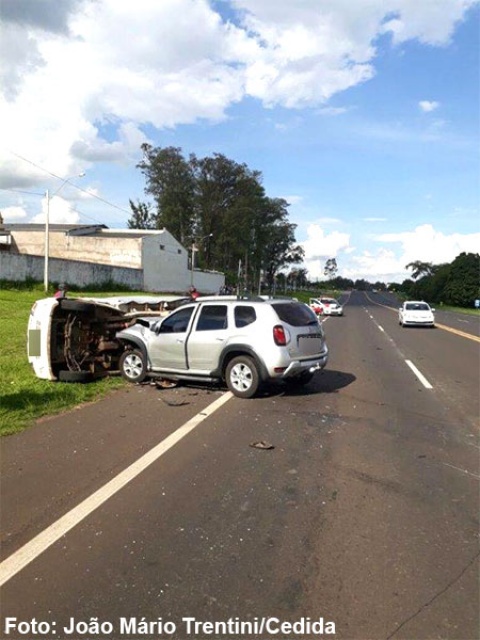 O acidente foi registrado PolÃcia Rodoviária de Tupã, com apoio da PolÃcia Militar de Quintana, resultou em três pessoas com ferimentos leves, sendo duas ocupantes do Renault e um ocupante utilitário, que foram socorridas ao Hospital de Pompeia.