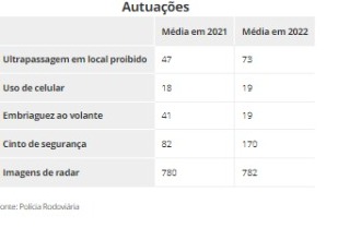 O número de autuações, por sua vez, apresentou aumento em variadas infrações. Confira o comparativo com o ano passado abaixo: