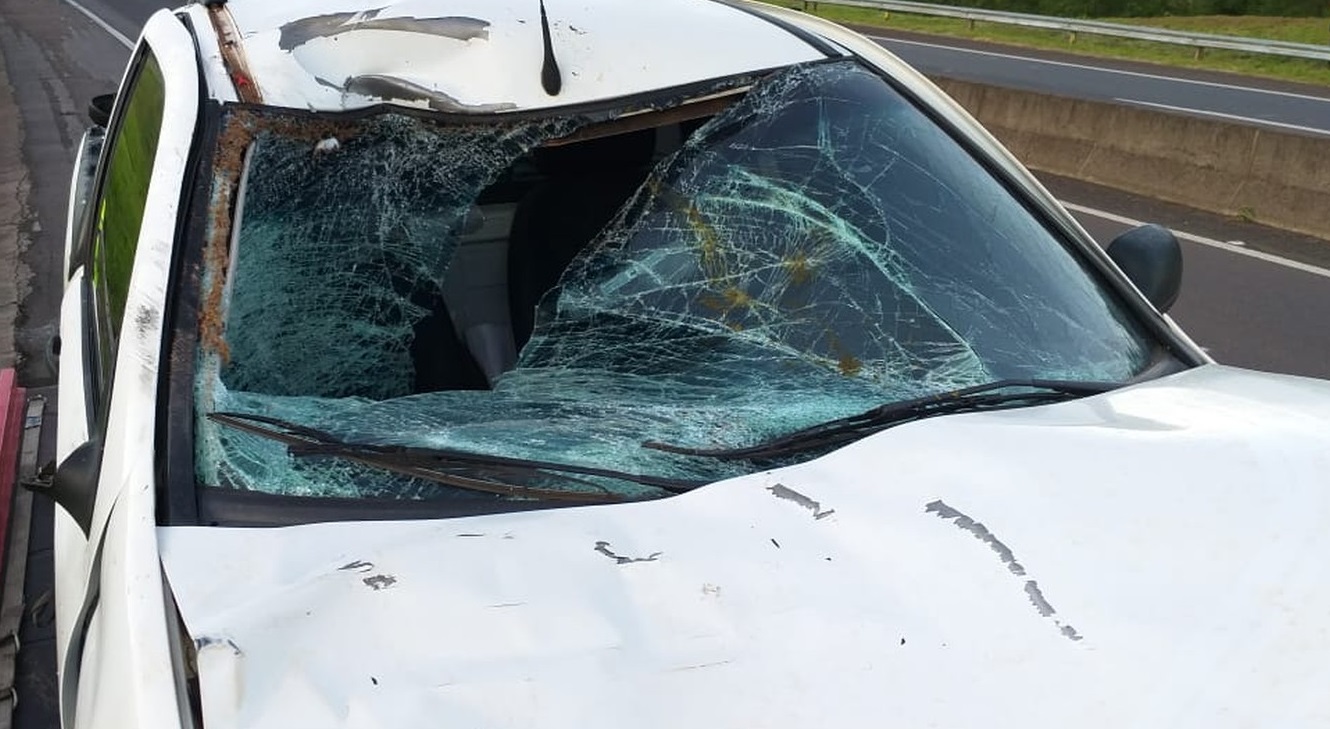O motorista, de 28 anos, seguia sentido Regente Feijó-Prudente, pela pista da direita, quando a vaca atravessou na frente do veículo e bateu ao lado do passageiro.