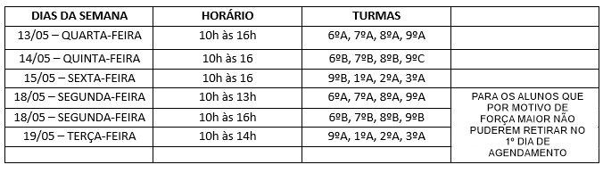 A Escola Estadual Osvaldo Martins, de Osvaldo Cruz, divulgou as datas e horários para a retirada do material didático (livros), para que os alunos possam realizar as atividades em casa nesse período em que as aulas presenciais estão paralisadas em todo o estado.