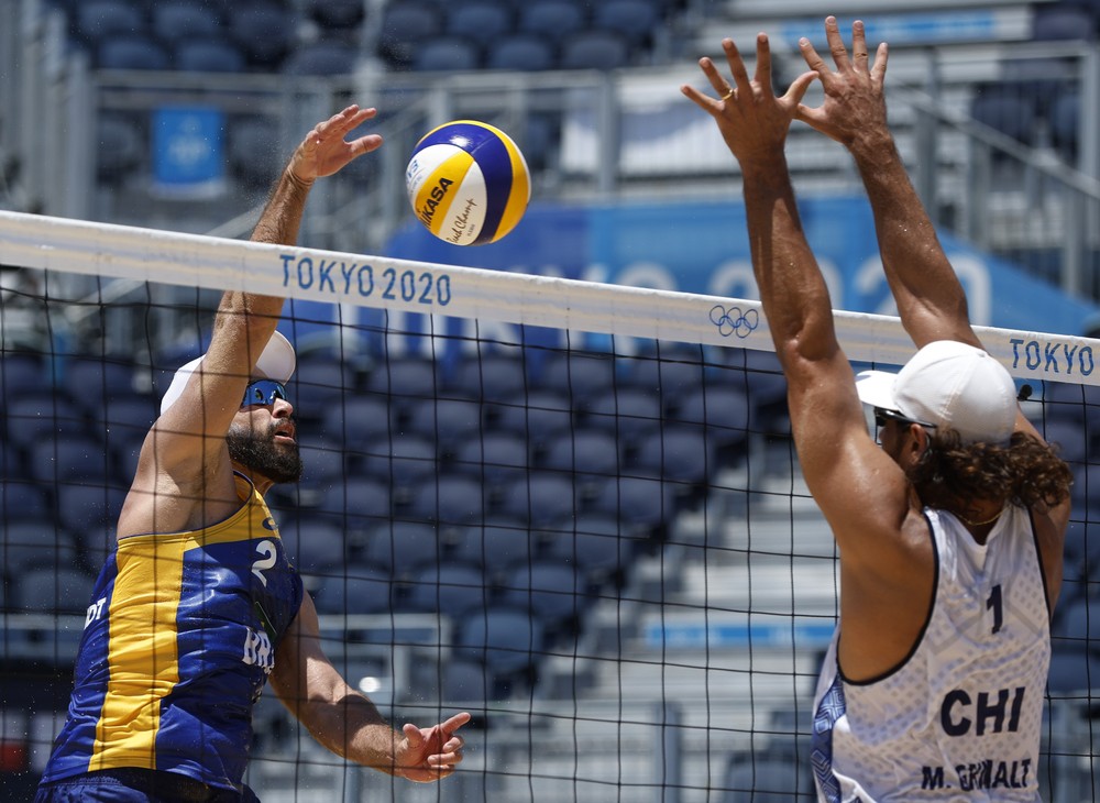 Os brasileiros Bruno Schmidt e Evandro Marco venceram os chilenos Marco e Esteban Grimalt, que são primos, por 2 a 1, na estreia do vôlei de praia nas Olimpíadas de Tóquio, parciais de 21/16, 16/21 e 15/12. O jogo foi válido pela primeira rodada, e os times estão no grupo E, ao lado ainda dos times da Polônia e Marrocos. Os brasileiros voltam a jogar na madrugada de segunda para terça-feira, às 3hs no horário de Brasília, contra os marroquinos El Graoui e Abicha.