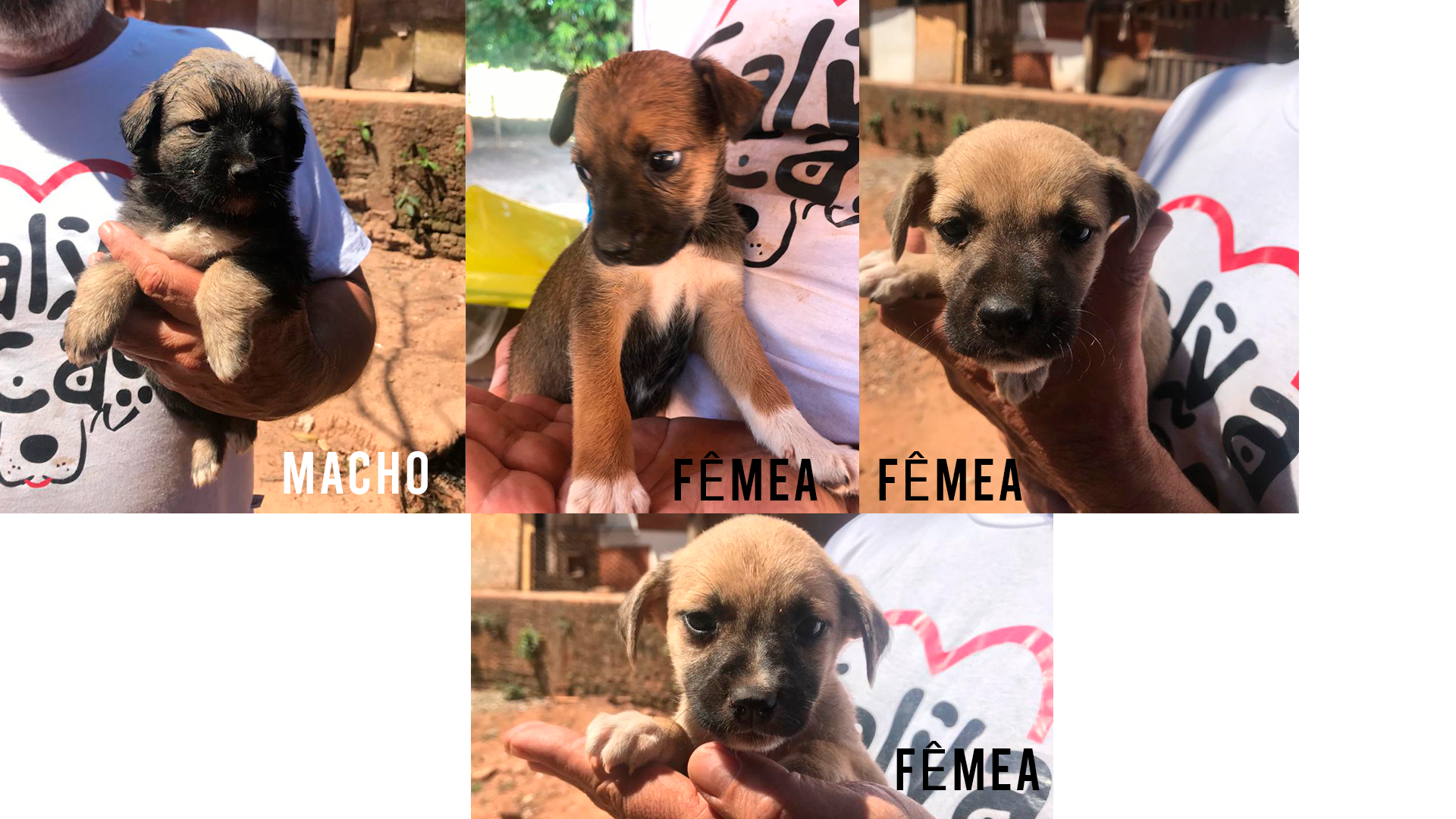Esses quatro lindos cachorrinhos estão disponíveis para adoção responsável. São 3 fêmeas e 1 macho. Quem quiser levar um deles para casa e ser muito amado, pode entrar em contato com as voluntárias da SalvaCão pelo telefone (18) 98194-5721.